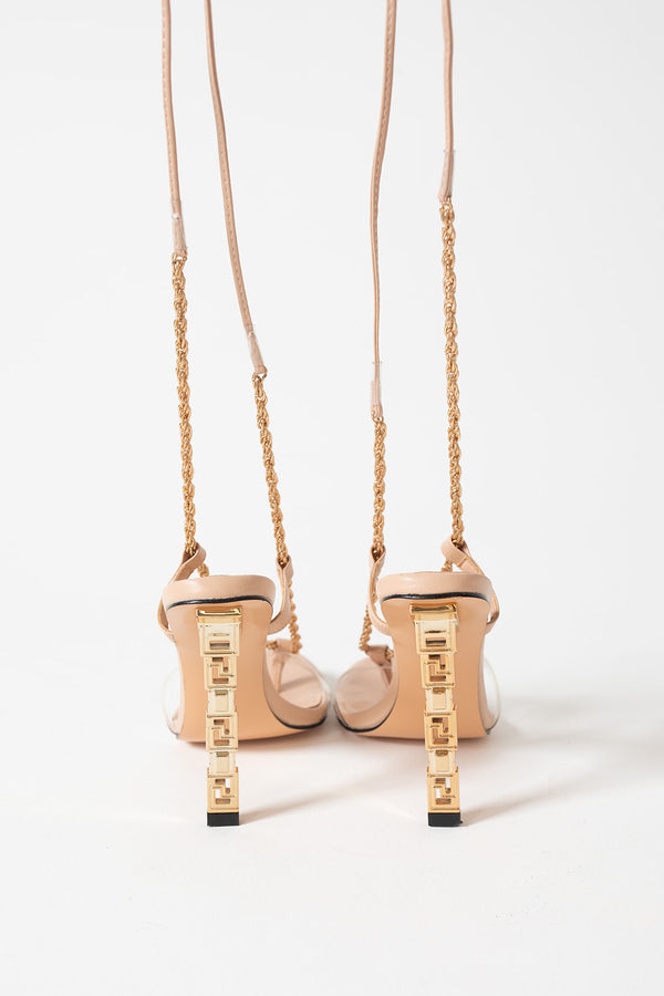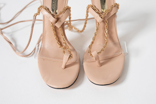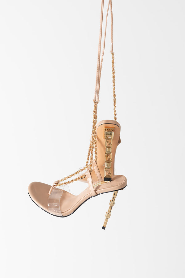 Crafted with intention and edge, the signature toe chain wraps elegantly around the foot and gathers at the ankle for a shape that flatters and captivates. By day, it catches the light. By night, it steals the show. Classy, bold, and undeniably authentic.. these heels turn heads, always.