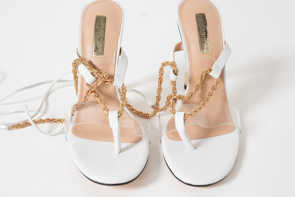 Crafted with intention and edge, the signature toe chain wraps elegantly around the foot and gathers at the ankle for a shape that flatters and captivates. By day, it catches the light. By night, it steals the show. Classy, bold, and undeniably authentic.. these heels turn heads, always.