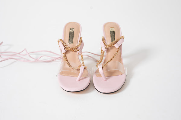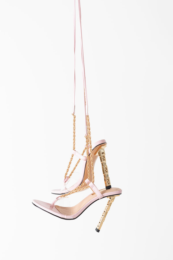 Crafted with intention and edge, the signature toe chain wraps elegantly around the foot and gathers at the ankle for a shape that flatters and captivates. By day, it catches the light. By night, it steals the show. Classy, bold, and undeniably authentic.. these heels turn heads, always.
